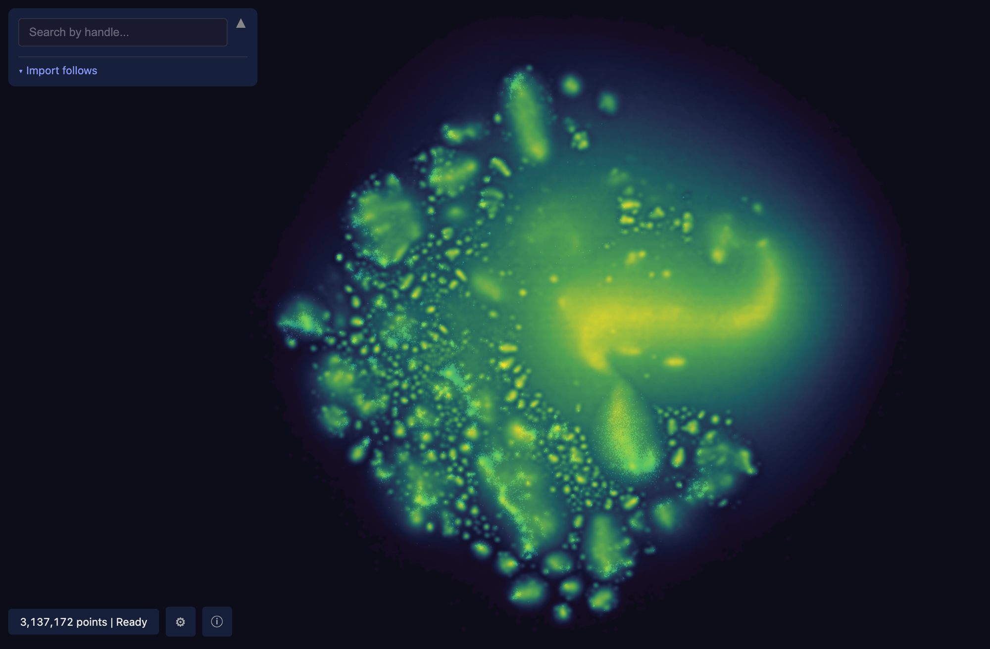 The Bluesky constellation. If you're on Bluesky, check out this incredible map by Theo Sanderson, who has visualized all 3.4 million users by their follower patterns. Find yourself!