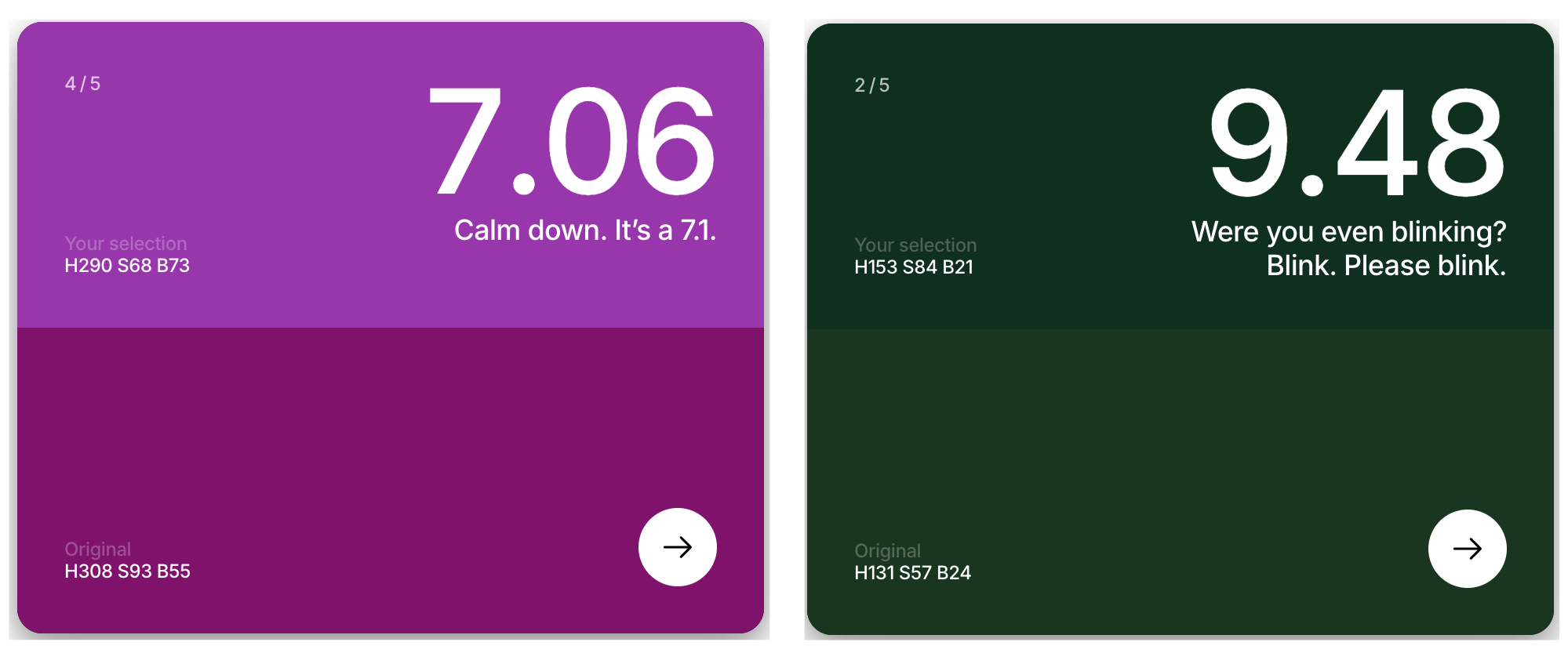 Here's a colour. Recreate it. This simple colour game is addictive and frustrating. Definitely worth wasting some time on.