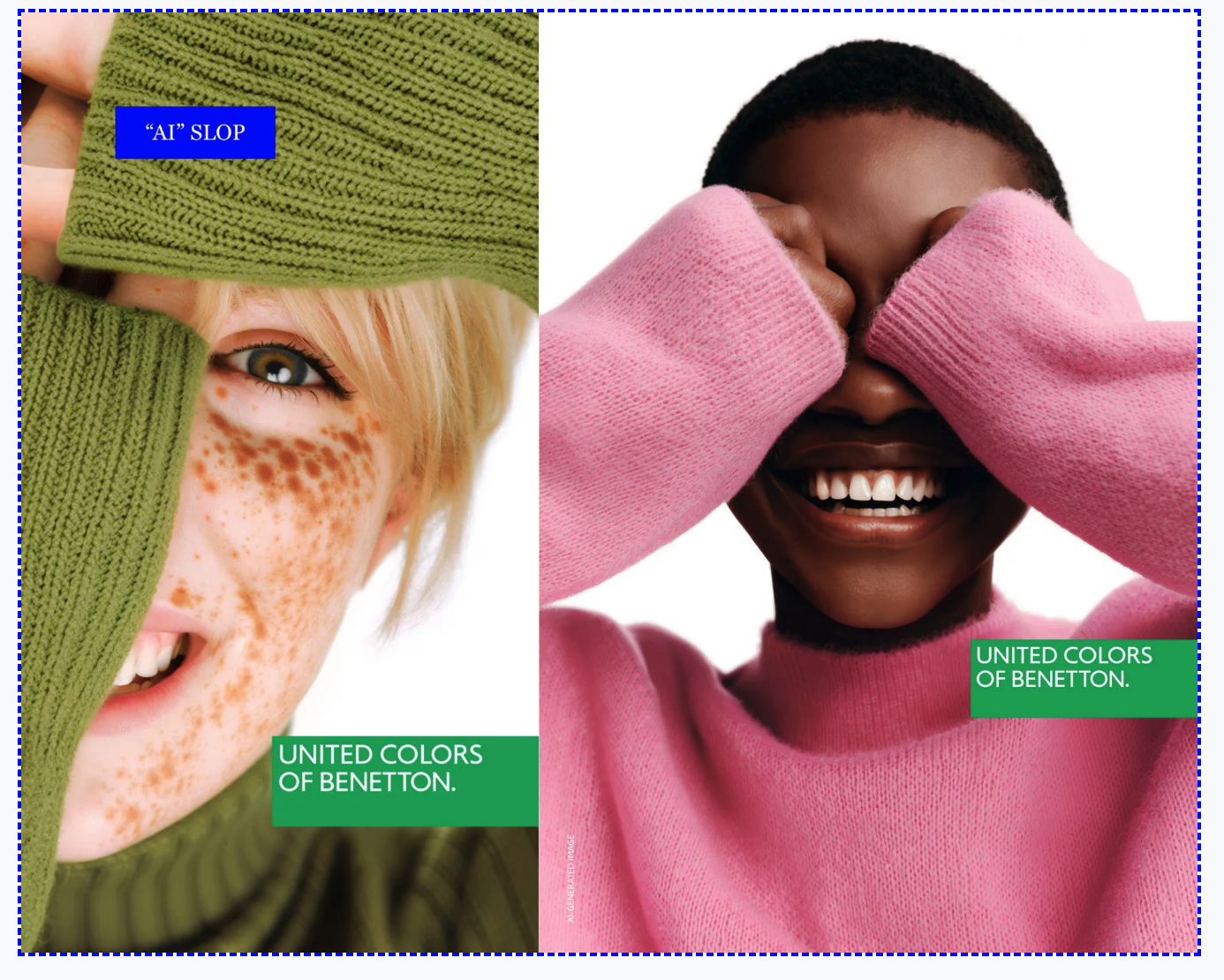 Slop ain't chic. Anxiety.eco takes on the fashion industry for its use of AI in advertisements. These big brands are great at mental gymnastics, claiming the tool both increases diversity and is a way to reduce carbon emissions.