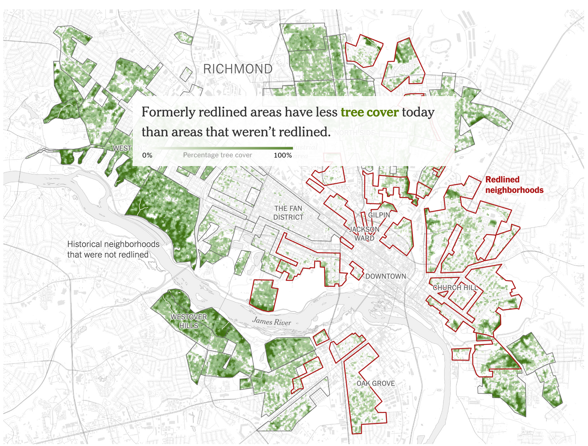 Back in 2020, Nadja Popovich and Brad Plumer did some incredible reporting on the environmental impact of redlining. Check it out. It continues to be one of the best pieces of climate journalism I've read.
